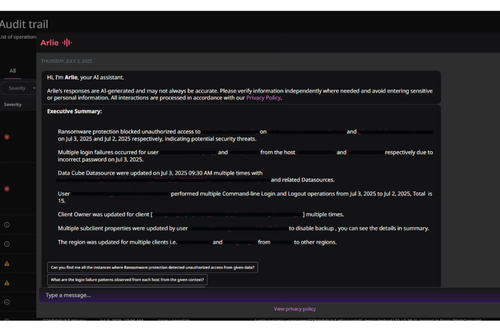 Ngoài ra, Arlie Data Sense còn chủ động làm nổi bật các sự kiện liên quan đến bảo vệ ransomware và những thay đổi quan trọng, giúp người dùng đi trước rủi ro tiềm ẩn.