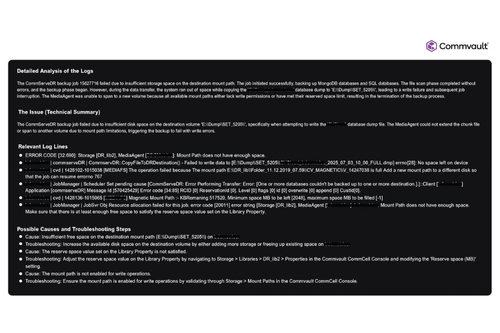 Môi trường IT hiện đại sản sinh khối lượng dữ liệu khổng lồ mỗi ngày: log, cảnh báo, thông báo lỗi và nhiều hơn thế. Trên nền tảng Commvault, chúng xuất hiện dưới dạng audit trail và lịch sử job, với hàng trăm, thậm chí hàng nghìn sự kiện diễn ra liên tục.